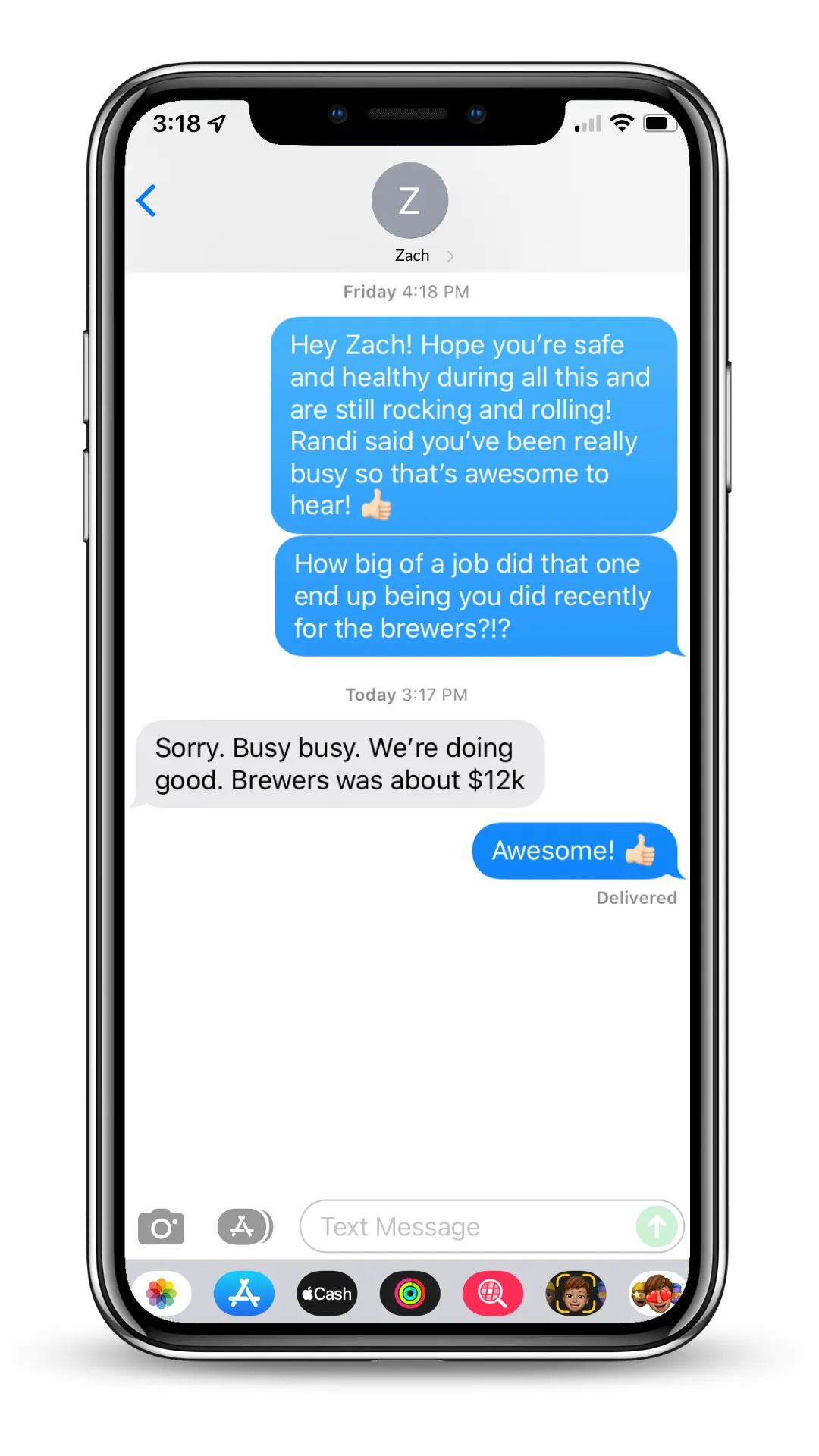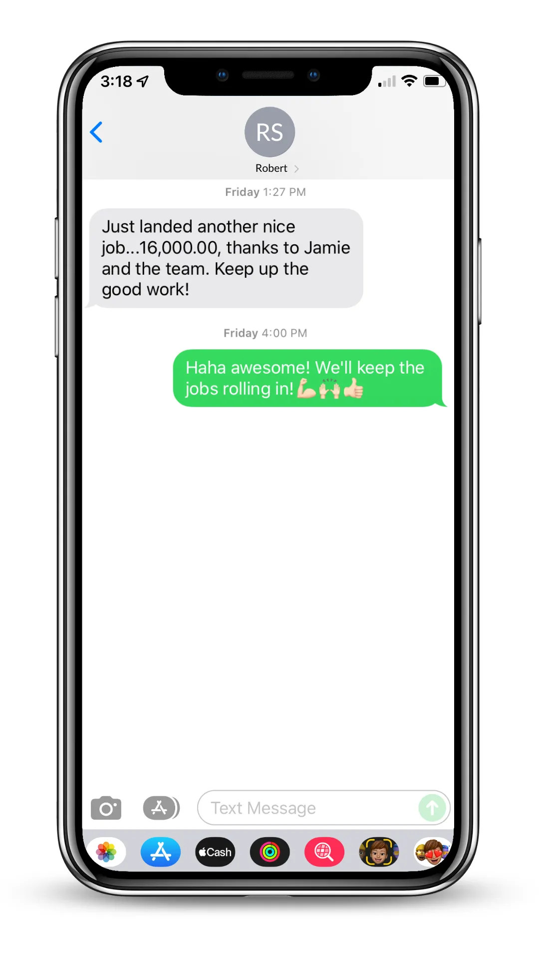 We get texts from our clients all day every day about jobs they get from us.