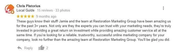 We're the #1 rated marketing company for restoration companies for a reason...